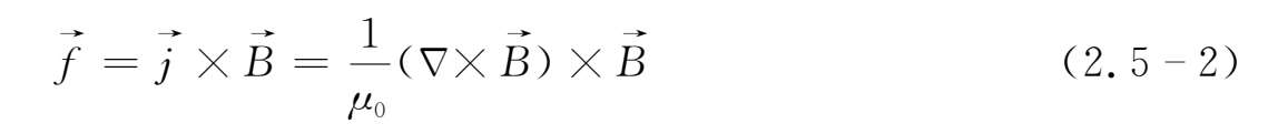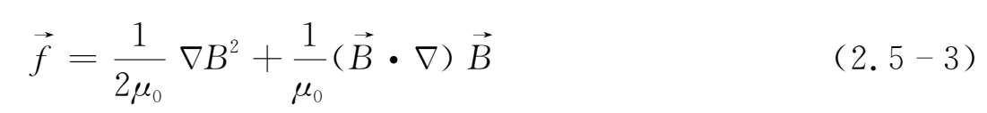 由(2.5-1)或(2.5-2)式表示的磁力是一个体积力(或称体力),它是作用在单位体积导电流体上的有质动力。