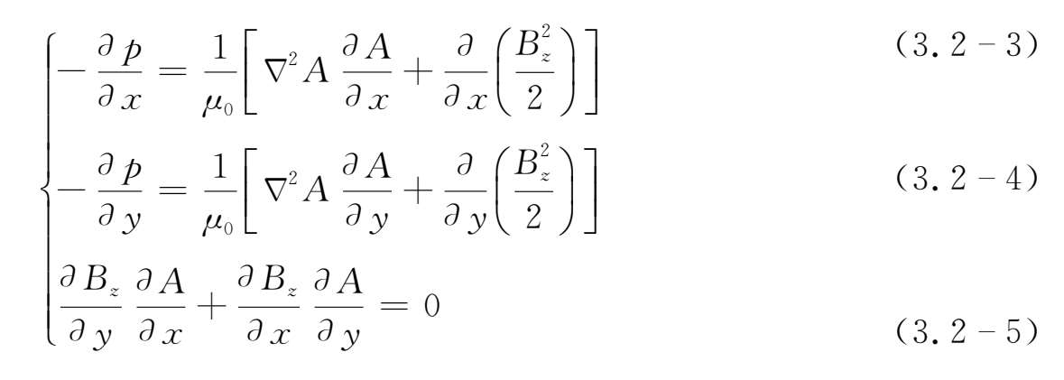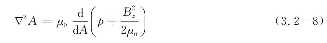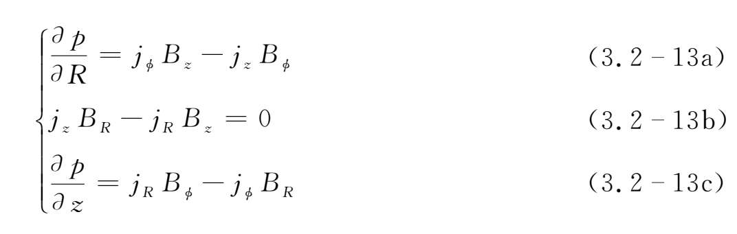 (ψ)或者I(ψ)(3.2-18)式的具体函数形式,加上合适的边界条件,就可以从Grad-Shafranov方程求解出ψ=ψ(R,z),而ψ(R,z)=常数的空间曲面就是相互叠套的环形磁面。关于球坐标系下二维无力场的Grad-Shafranov方程可见下节(3.3-39)式。