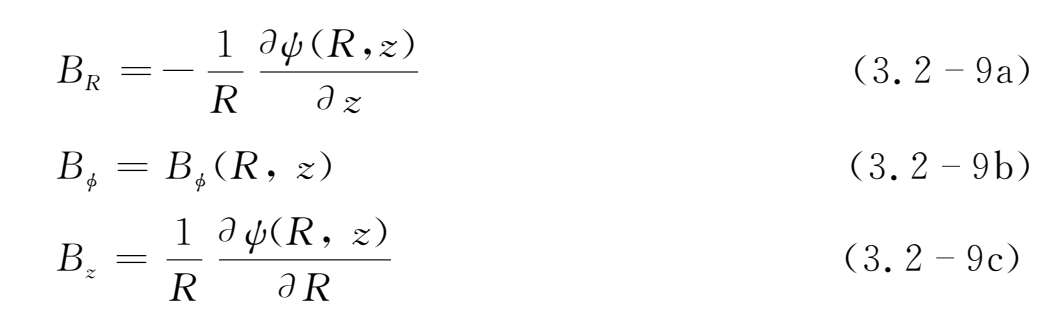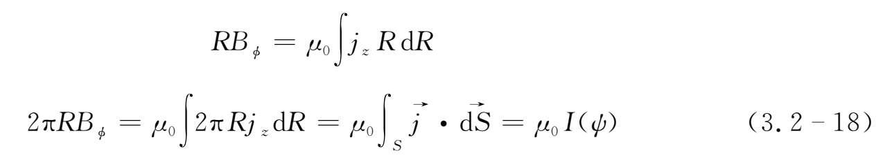 式中ψ为通量函数,ψ=ψ(R,z)。代入安培定律