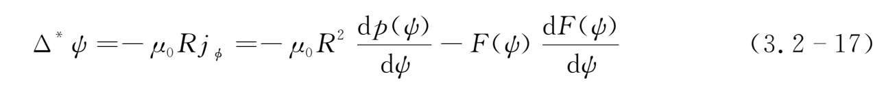 式中F=RB ϕ 。将j ϕ 代入(3.2-11)式即可得环形结构下ψ所满足的二维Grad-Shafranov方程