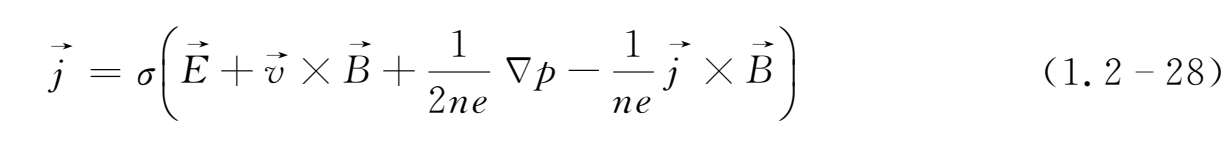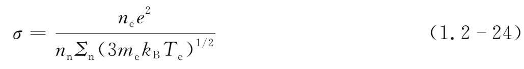 将(1.2-21)、(1.2-22)、(1.2-23)式代入(1.2-20)式可得弱电离等离子体情况下的电导率为