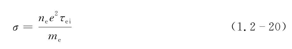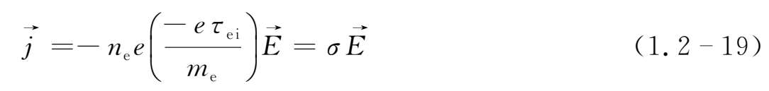 σ称为电导率。(1.2-20)式中除了原子常数外,只包含两个变数即电子的数密度和电子碰撞时间τ ei ,前者是一个确定量,下面主要对电子的碰撞时间进行讨论。