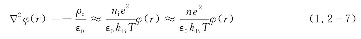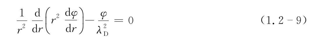 考虑到电势对所认定离子是球对称的,使用球坐标,将泊松方程(1.2-7)式改写为