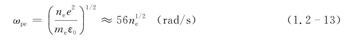 (1.2-13)定义的ω pe 就是等离子体电子振荡频率。在导出这个频率时,热运动和碰撞可以略去不计。