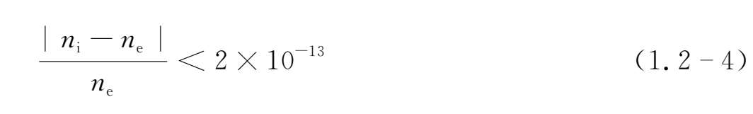 在等离子体中,正负粒子所带的电荷在宏观上的分布总是呈现电中性的。如果在宏观上等离子体中的电荷出现了不均匀分布,例如,即使在稀薄的等离子体中,假设n约为10 17 /m 3 的情形,偏离电中性仅1%引起的场强就达