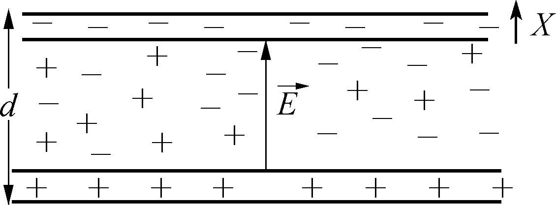考察厚度为d的无穷大等离子体平板(见图1.2),并设电子相对于离子移动了一小段距离ξ(ξ≪d)。在板的两个表面上形成了密度为±