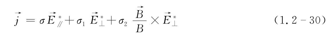 以上结果均在无磁场时成立,当等离子体中存在磁场时,情况将复杂得多,此时电导率σ不再是各向同性,而是以张量形式出现,即