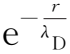 (r)称为德拜势,它是等离子体中点电荷q的电势,它等于点电荷q的库仑势乘上衰减因子
