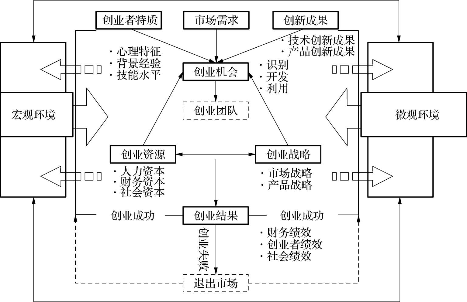 。叶明海等的ORSO创业模型将创业过程视为一个动态、开放的系统,认为宏观环境与微观环境始终影响着创业过程,关键要素同宏观环境与微观环境之间发生交互作用