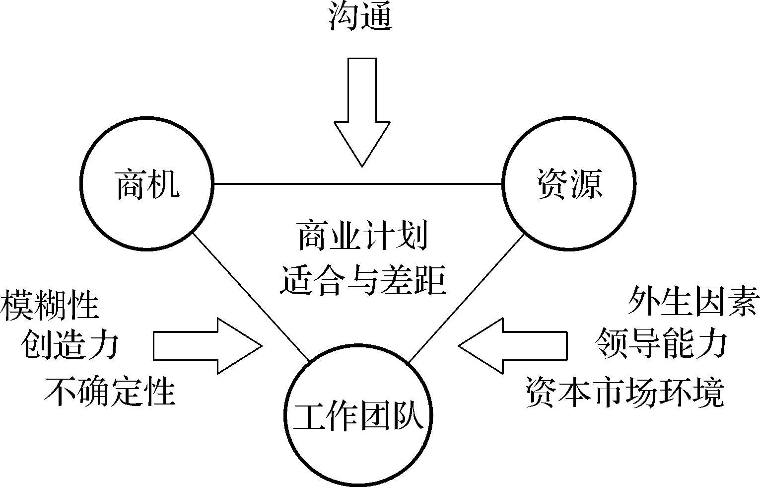 。Timmons模型认为创业过程是一个高度的动态过程,商机、资源和团队三个驱动因素要随外部环境变化不断持续调整,以实现创业过程的动态平衡