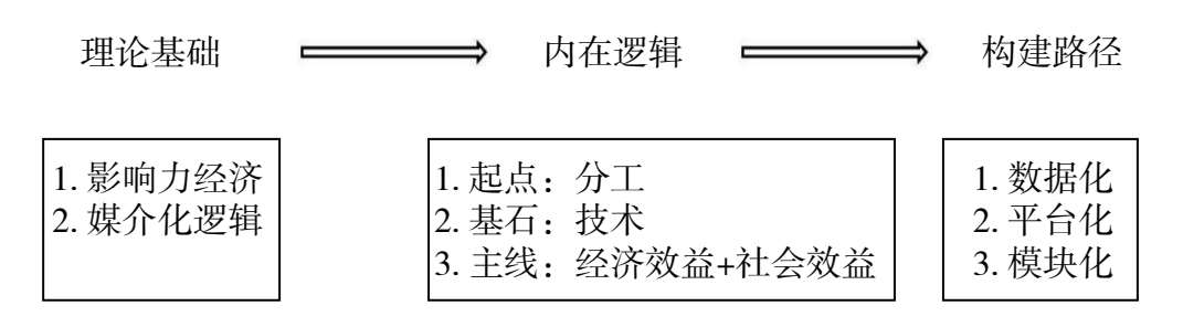 本文将“影响力经济”和“媒介化理论”作为探讨数字经济视角下传媒虚拟产业集群构建问题的起点,进而从“分工”“技术的作用”和“经济效益和社会效益”三个方面阐述两者间的内在逻辑,并提出三条可行性构建路径(见图1)。