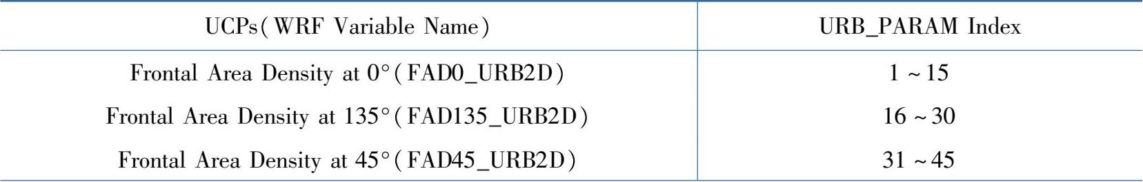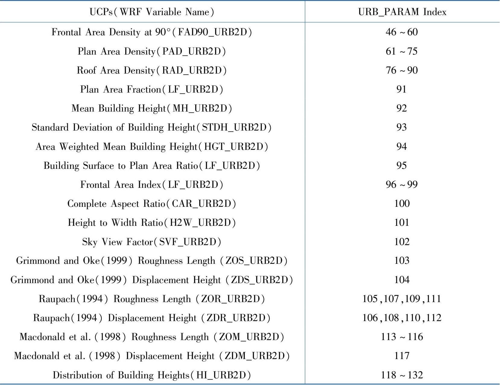 表3.1.1给出了WRF模式中所需要的城市冠层参数,其中参与城市冠层方案计算的主要参数计算方法如下: