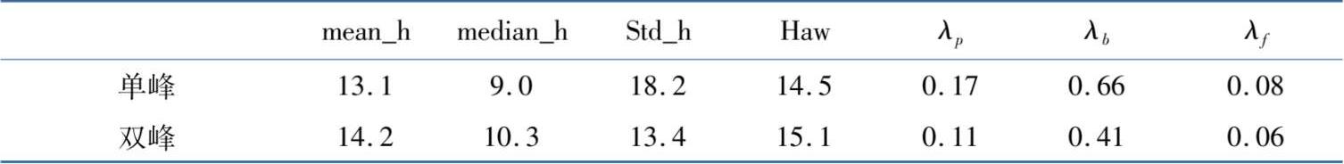 图3.1.3 典型单双峰形态城市建筑物高度概率密度曲线