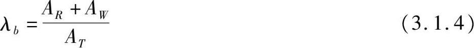 与建筑物水平投影面积比类似,λ b 表示网格内建筑物表面积与网格面积之比,计算公式为: