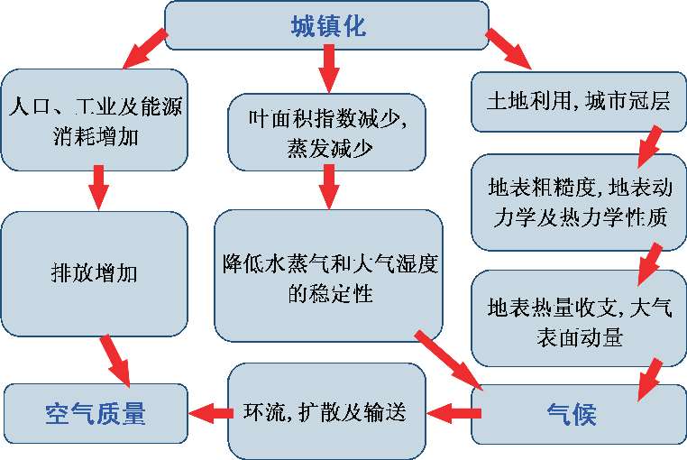 图1.5.3 城市化对气候及空气质量影响途径示意图(Wang et al.,2017)