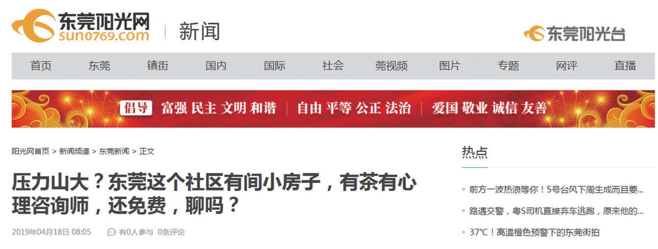 2019年4月,东莞阳光网的记者走访了雅园社区的心理茶馆,并对心理茶馆进行了报道。报道的主要内容如下:
