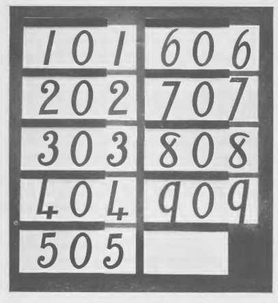 这些数字被固定在框架上,数字 1 到 9 可以滑动遮住数字0。数字 10 的 0 被 1 遮住,就会显示出数字 11。如果数字 10 的0 被 2 遮住,就会显示出数字 12。以此类推,直到最后一个数字9。然后,我们转到数字 20(第二个 10),我们可以用这种方式从 10 数到 99。