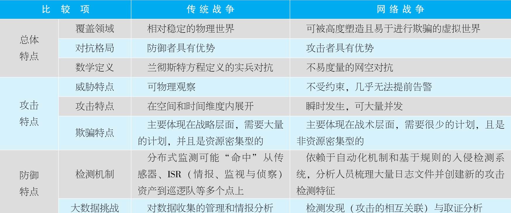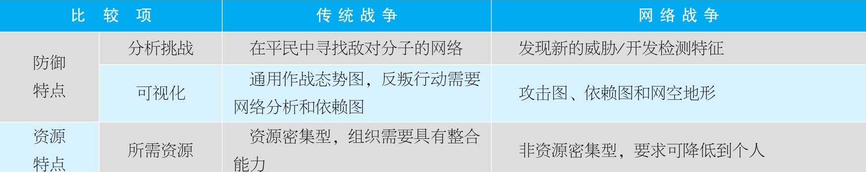 表1-1 传统战争与网络战争的区别对比