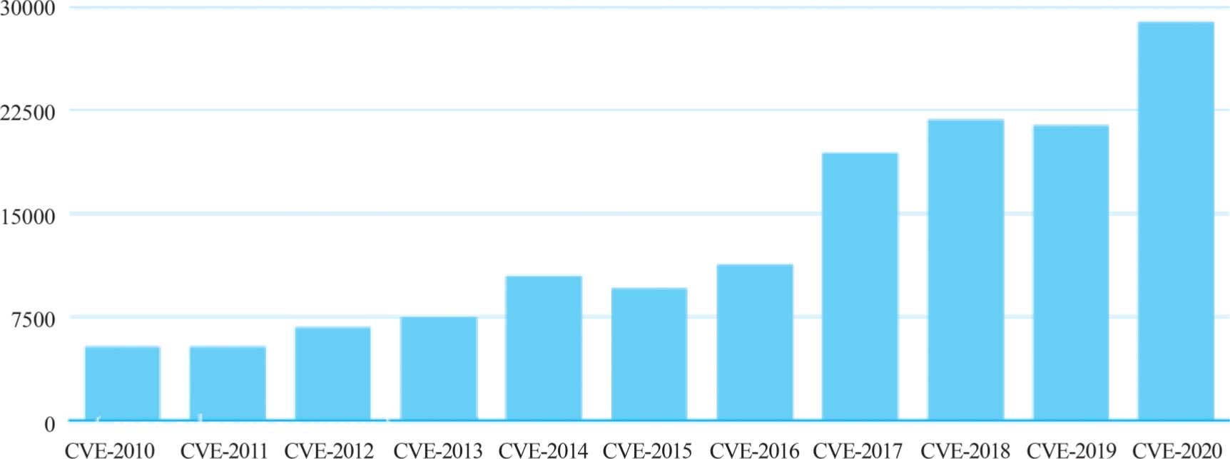 ·图1-13 2010—2020年间的软件安全漏洞数量变化趋势