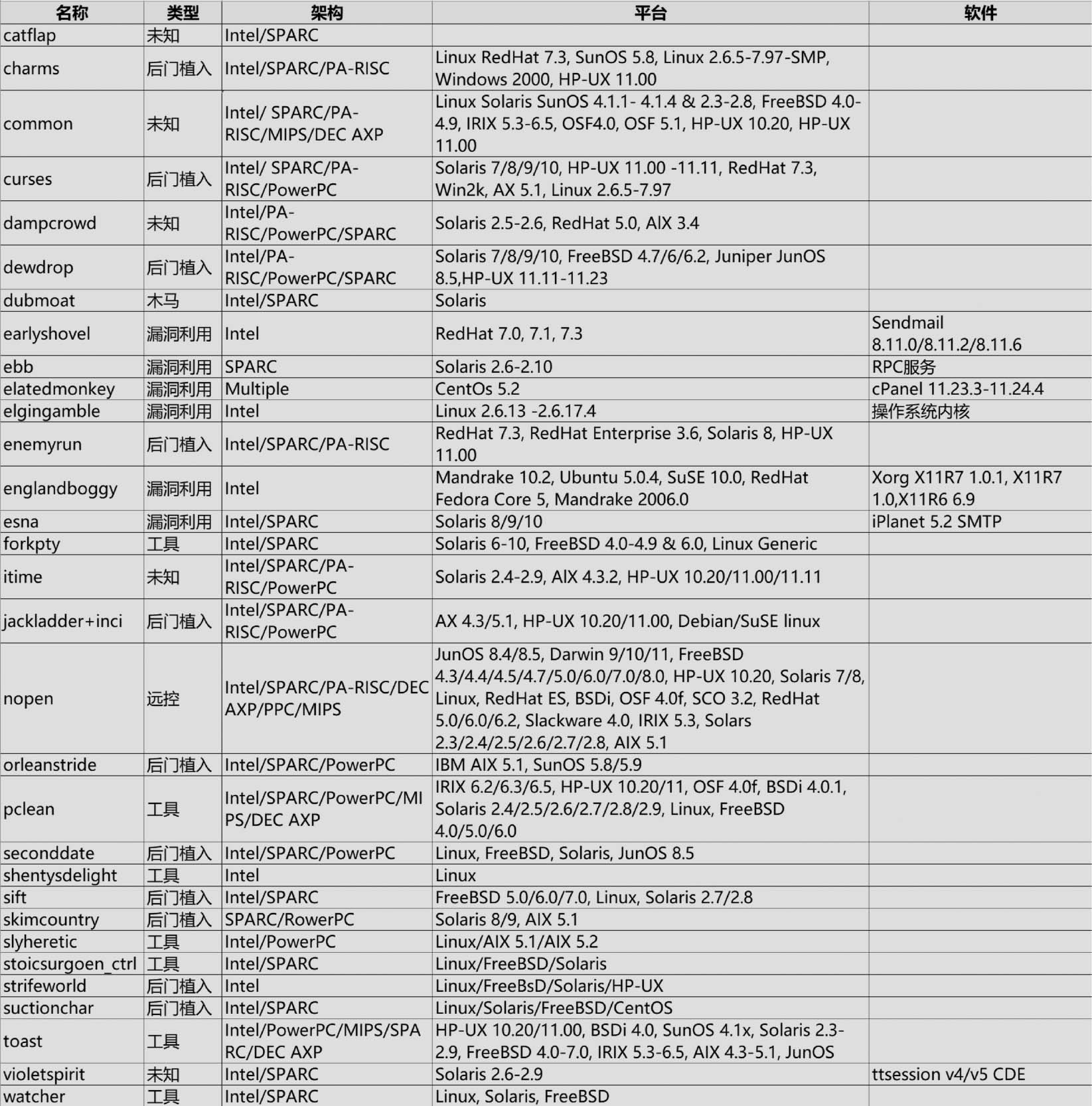 ·图1-5 “影子经纪人”泄露的UNIX黑客工具(部分)
