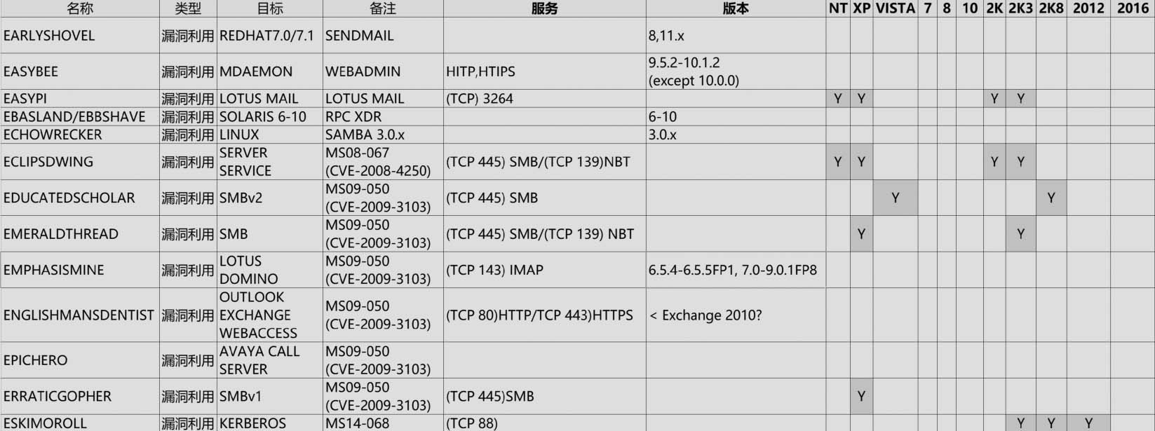 2017年4月,“影子经纪人”泄露NSA“永恒之蓝”等系列0day漏洞攻击工具。