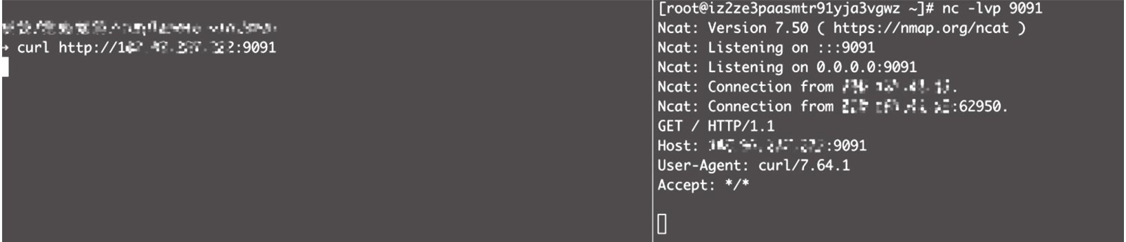 先看看如何判断SSRF漏洞是否存在。我们可以先在自己的服务器上用Netcat工具监听某个端口,然后通过SSRF去请求。如果我们的服务器收到请求了,说明存在SSRF。如果未收到,也不能判断其不存在,还需要考虑目标机器不出网的情况,如图1-108所示。