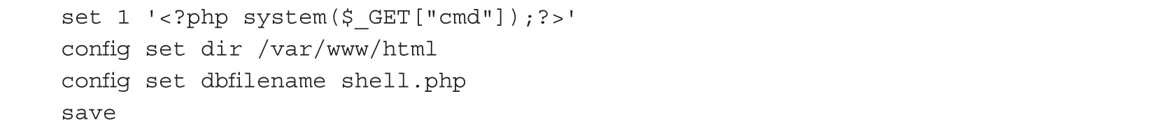 上述代码先设置工作路径为我们要写入文件的路径,然后设置dbfilename为我们要写入的文件名,就实现了任意文件写入。