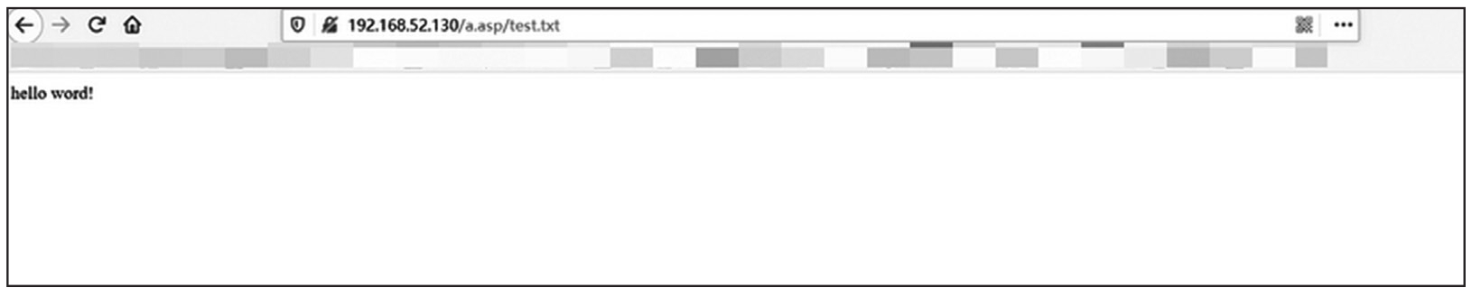 下面介绍IIS6.0解析漏洞的方法。目录解析/xx.asp/xx.jpg,在网站中建立a.asp文件夹,其目录内任何扩展名的文件都被IIS当作.asp文件来解析并执行,如图1-135~图1-137所示。
