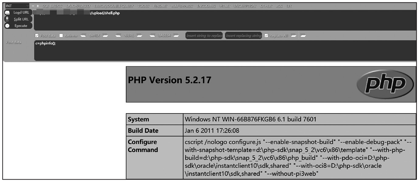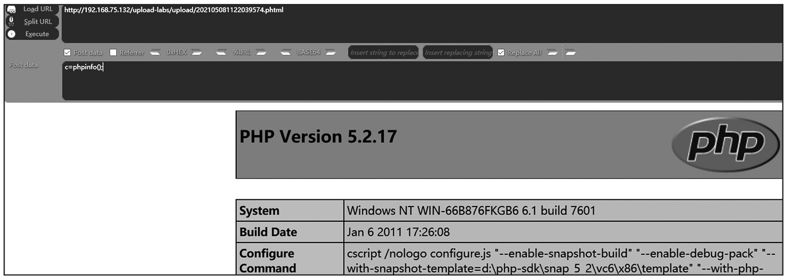 我们直接访问upload下的shell.php即可,后面的内容实际上已经被截断了,效果如图1-131所示。