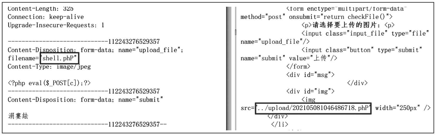 大小写绕过利用了代码过滤不严谨,忽略了大小写,同时解析脚本时对文件名大小写不敏感的漏洞。例如我们上传shell.php文件和上传shell.php文件达到的效果是相同的。当shell.php上传不成功时,我们可以考虑上传shell.php来绕过,如图1-120~图1-122所示。