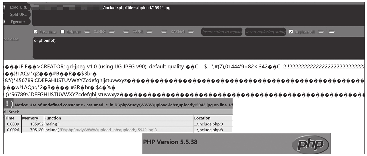 处理结束后上传图片,利用文件包含漏洞即可,如图1-167所示。