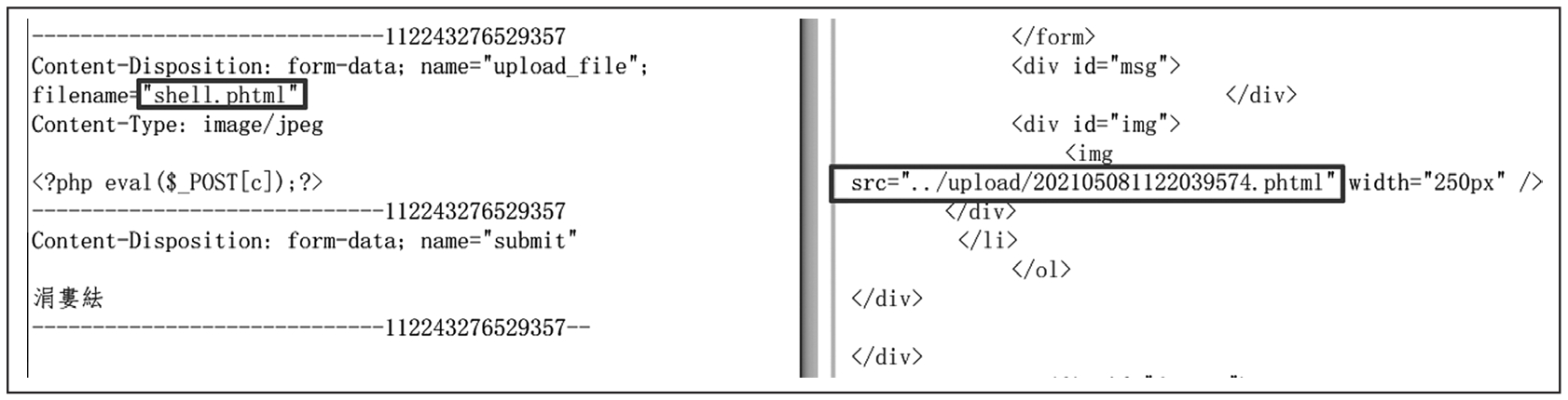 通常来说,一些中间件的默认配置项就设定了一些可解析的格式,如.phtml、.phps、.pht、.php2、.php3、.php4、.php5等。我们使用常见的.phtml举例,如图1-126、图1-127所示。