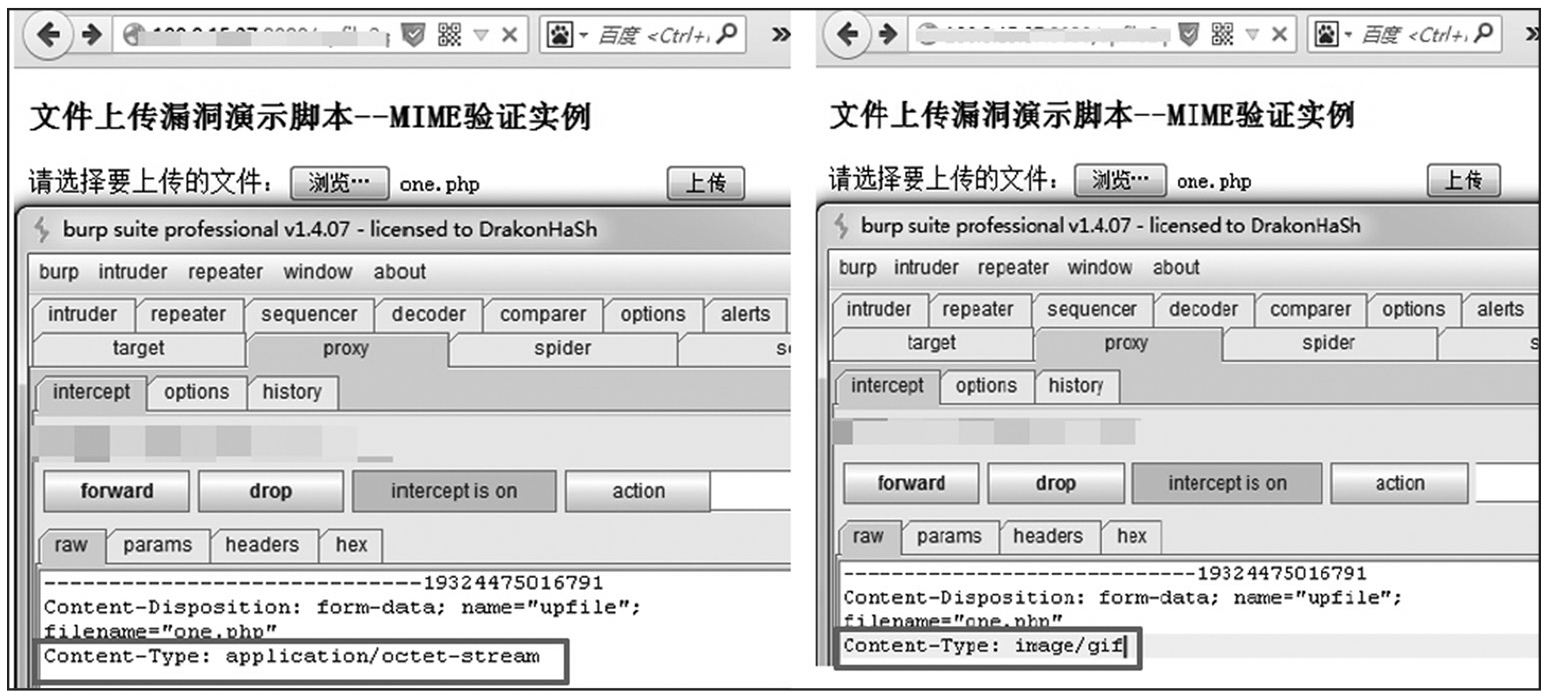 MIME类型检测是服务端对客户端上传文件的Content-Type类型进行检测,如果是白名单所允许的,则可以正常上传,否则上传失败,如图1-149、图1-150所示。