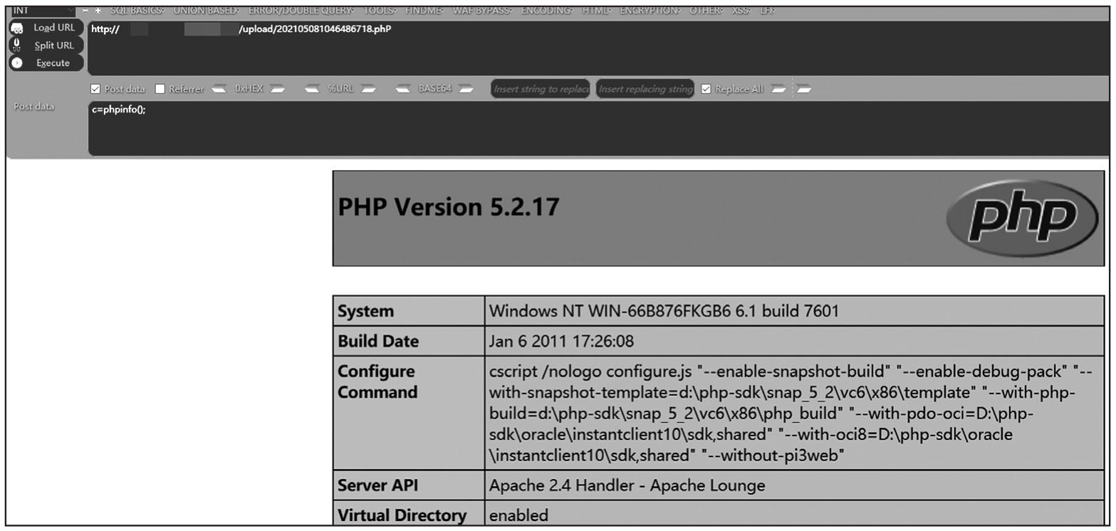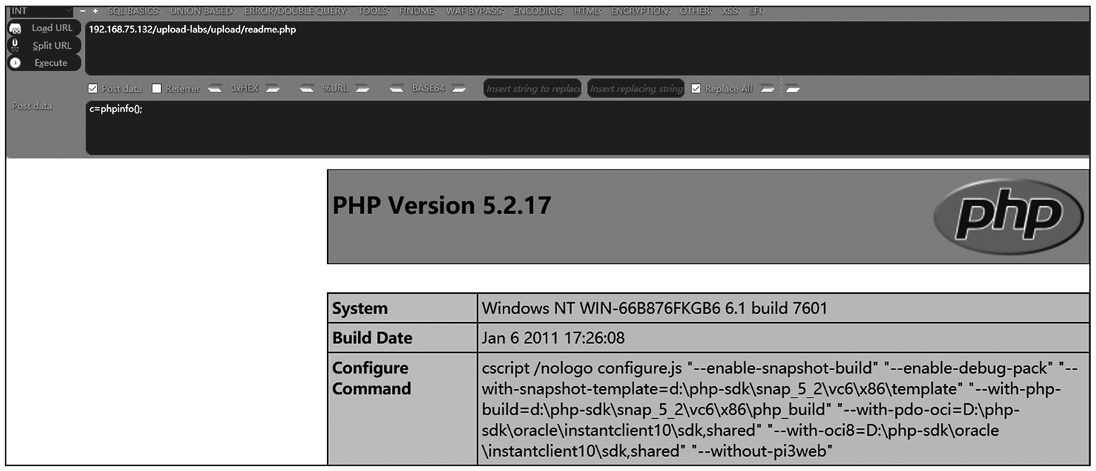 我们直接访问upload下的shell.php即可,后面的内容实际上已经被截断了,效果如图1-131所示。