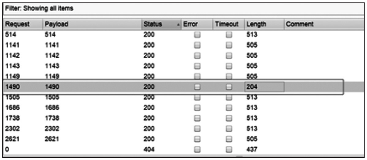 开启攻击,当访问包出现200状态码时,表示成功写入,如图1-164所示。