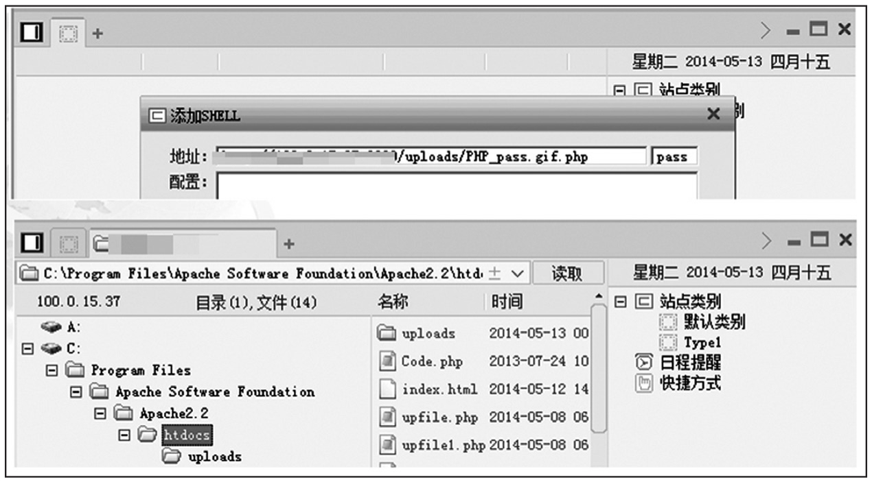 Apache 2.2.11版本的解析漏洞如图1-134所示。上传*.php.cimer后缀的文件,将其成功解析为*.php文件,并且可以被“菜刀”等WebShell管理工具连接,获得网站权限。