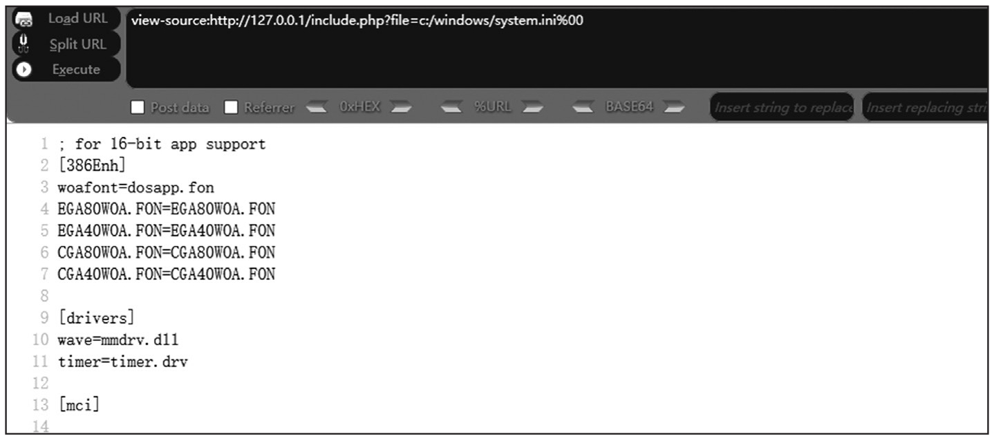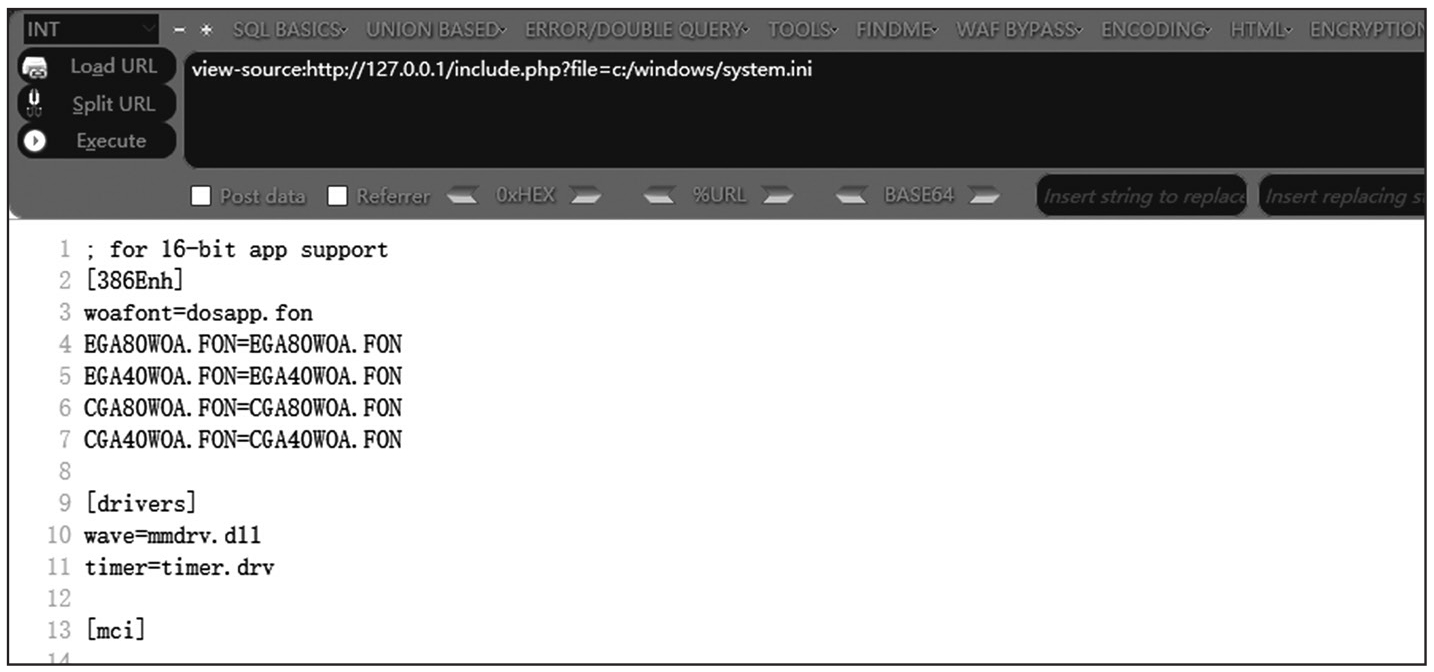 通过file伪协议可以访问本地文件系统,读取文件的内容,如图1-176所示。