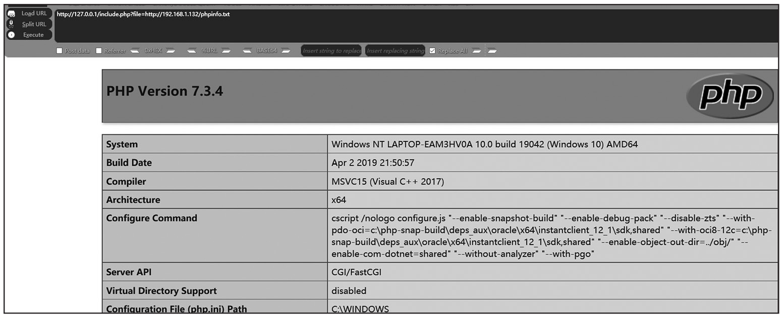 常规远程文件包含就是简单地从其他服务器上获取资源并载入该服务器,最终达到执行PHP代码的目的,如图1-171所示。