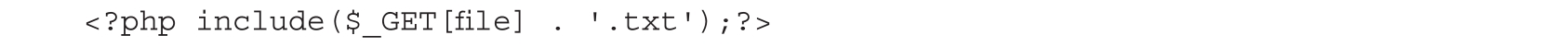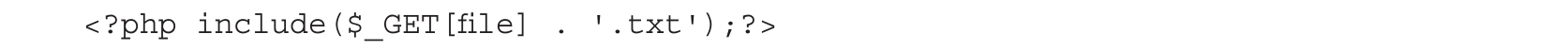 可以看出,相比于上面常规的漏洞代码,这次我们强制在结尾拼接了.txt,目的是让用户只能包含后缀名为txt的文件,这并不是不可绕过的。