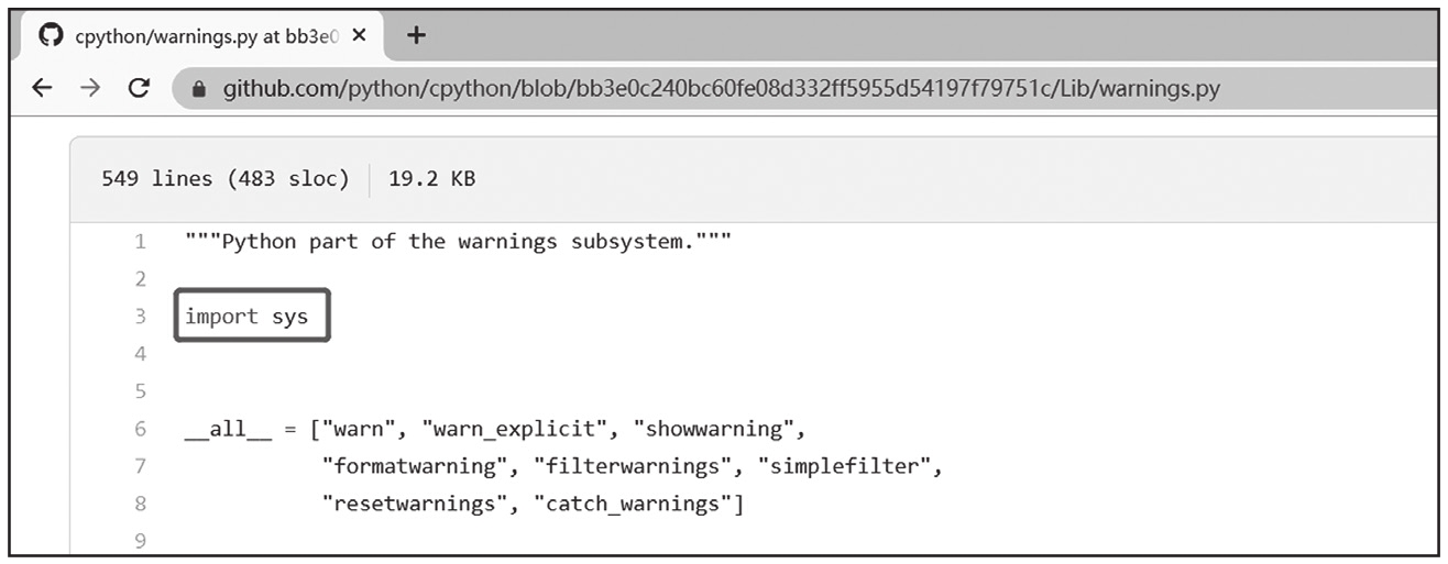 将源码翻到顶部可以看到导入了sys模块,如图1-215所示,我们可以利用这个类间接调用sys模块,从而达到命令执行的效果。