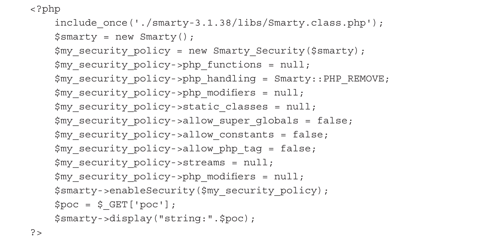 Smarty是一个用于PHP的模板引擎,促进了表示层(HTML/CSS)与应用逻辑的分离。这意味着PHP代码是应用程序逻辑,与表示层分离。2021年2月,研究人员发布了该模板引擎的两个CVE漏洞,漏洞可用于绕过沙箱机制执行PHP代码,受影响的Smarty模板引擎版本小于或等于3.1.38。