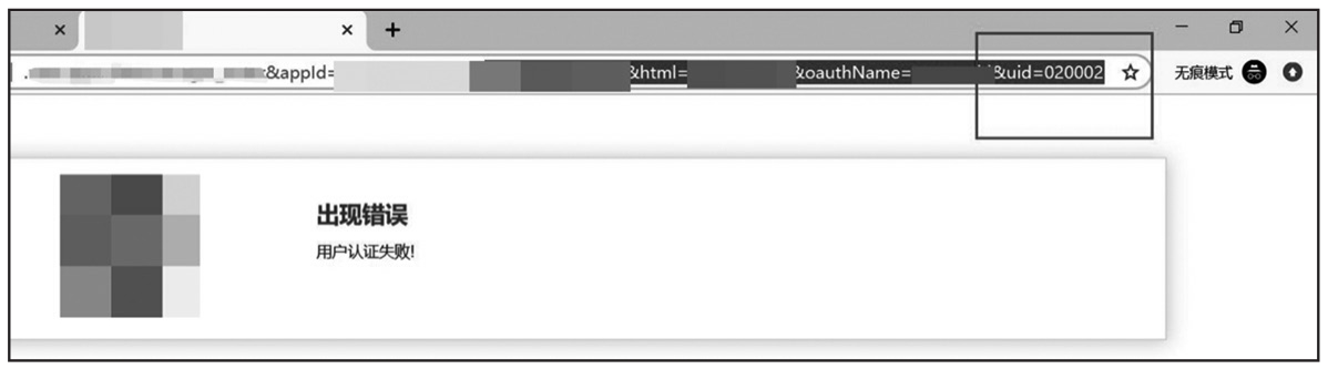 一般企业在SSO中整合了多个应用系统,用户只需要登录一次就可以访问此用户权限范围内的应用系统。在一次测试过程中,发现某系统存在SSO垂直越权漏洞,具体利用过程:先以普通权限用户登录SSO系统,接着访问SSO里的应用系统,如果对应的系统中存在本账号就会认证成功,否则会提示系统中无此用户,如图1-259所示。