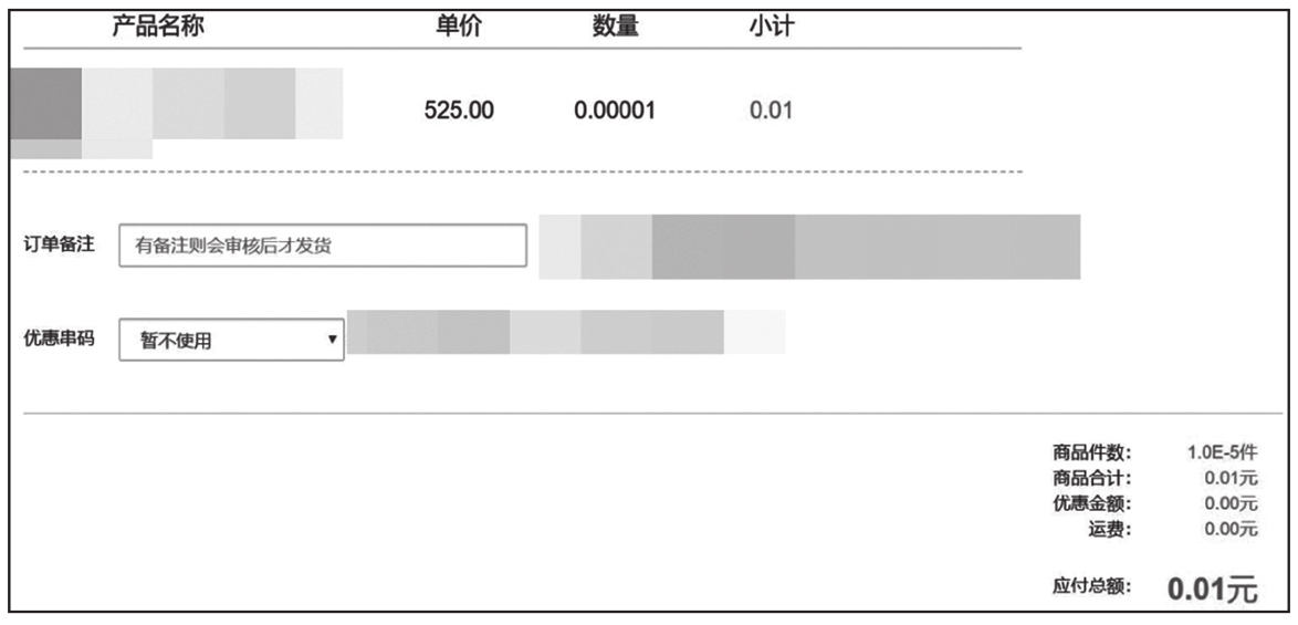 测试方法比较简单,与订单金额篡改类似,例如将一个售价100元的商品A加入购物车时抓包,将商品A的数量改为0.01个,此时去购物车里查看,发现有一个售价为1元的商品A,商品A的数量为0.01个。