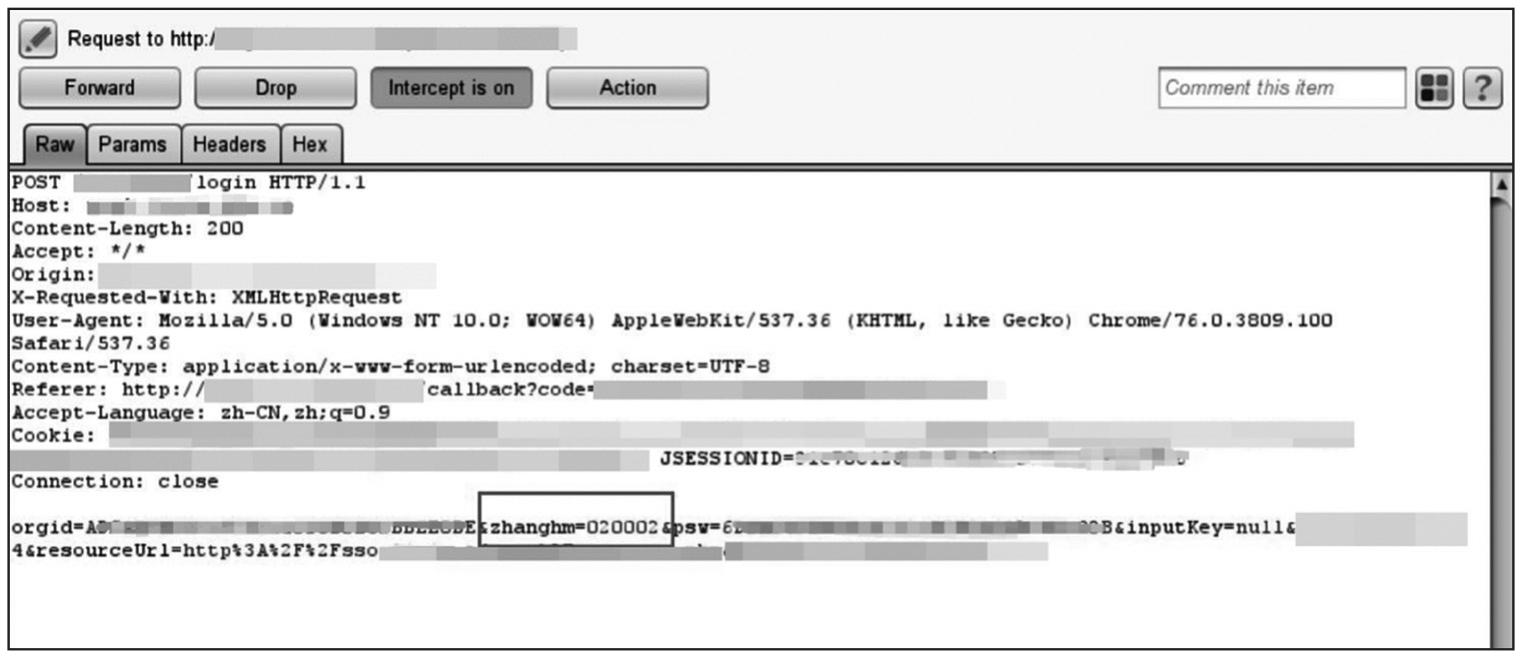 继续对其他系统进行测试,发现除了修改URL中用户参数这种越权方法,还有一种方法是修改POST请求包里认证用户名参数为要登录的用户名,可以直接垂直越权登录,原理相同。如图1-261、图1-262所示,将参数值改为admin直接以超级管理员身份登录了该系统。
