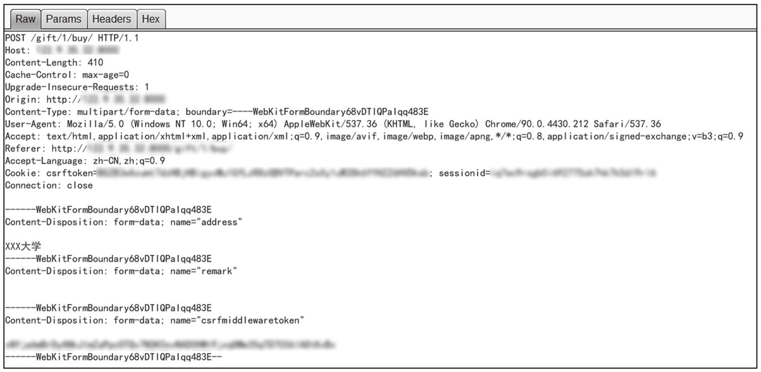 首先在兑换页面填好信息,兑换商品时抓包,如图1-251所示。