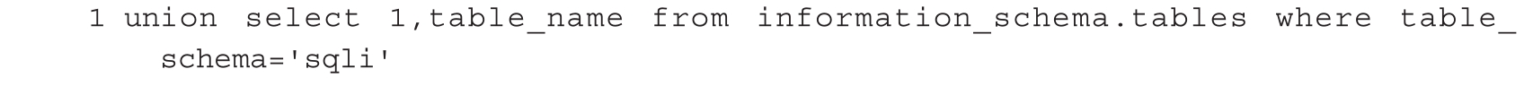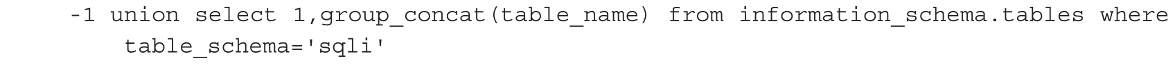 这里我们使用group_concat()函数一次查询出所有表名,代码如下。