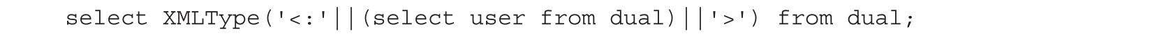 下面介绍一种在Oracle 8g、9g、10g版本中不需要任何权限就能构造报错的方法。需要注意的是,在Oracle 11g及之后的版本中,官方加强了访问控制权限,必须有网络访问权限,才能使用此方法,代码如下。