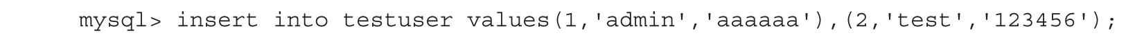 往testuser表里插入一些数据,代码如下。